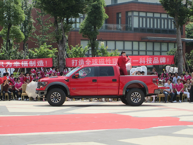 在比賽中,身著紅色演出服的青年歌手楊德朗站在車上出場,演唱了他的原創(chuàng)歌曲《最美中國人》。這首歌曲是康姿百德第二套健身操的背景音樂之一,全體參賽的健身愛好者隨著音樂而舞動,統(tǒng)一的著裝、整齊的動作、飽滿的熱情,將本次比賽推向了高潮。