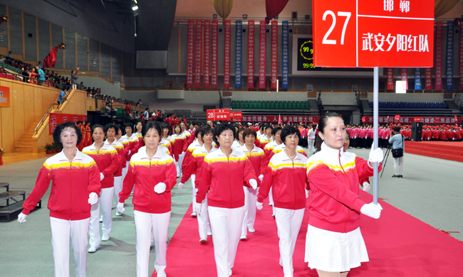 9月23日表彰大會中,康姿百德健身操比賽無疑是最受矚目的環(huán)節(jié)。經(jīng)過1個多小時的精彩比拼,山東濱州晚霞隊榮登冠軍寶座,獲得了康姿百德健身操大賽的一等獎;北京順義隊、北京通州隊榮獲二等獎;北京門頭溝隊、河北武安夕陽紅隊、北京昌平隊榮獲三等獎。