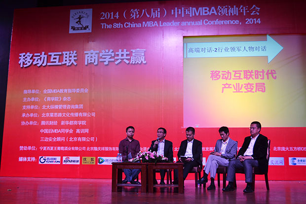 2014年5月2日至4日,我公司董事長李銀祥應邀出席了在北京召開的第八屆中國MBA領袖年會。會上,李銀祥作為特邀嘉賓,參與行業(yè)領軍人物高端對話,并圍繞“移動互聯(lián)時代產業(yè)變局”這一主題,對當前國際國內移動互聯(lián)網產業(yè)的發(fā)展局勢進行了深入分析,闡述了自己的觀點。
