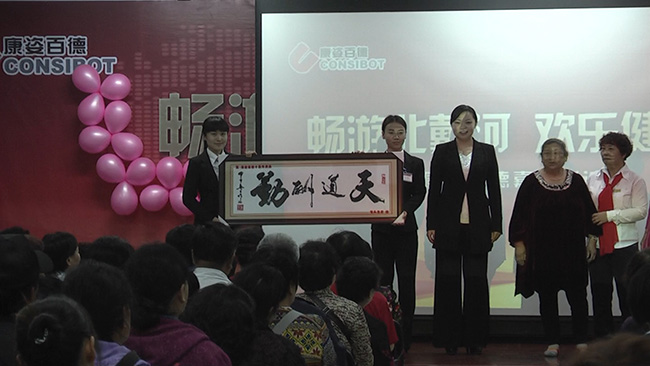 5月19日下午,康姿百德科技園三樓會議室座無虛席,氣氛熱烈,來自吉林白山、北京大興、內(nèi)蒙古包頭和山東淄博、濱州的新老朋友,在參觀完公司自動化生產(chǎn)線和磁科技展廳后,正在這里參加嘉賓聯(lián)誼會。 會上,來自包頭的康姿百德老朋友李元碧、郝秀珍和包頭總店的服務(wù)老師,手捧繡有“天道酬勤”四個大字的精裝牌匾,在一陣熱烈的掌聲中走上講臺,為康姿百德公司贈送了她們親手繡制的作品。李元碧老人對大家說,她今年73歲,郝秀珍老人69歲,在康姿百德公司成立10周年之際,她們給公司送上這件禮物,以表達她們的感恩之情。老人說,這件刺繡是她倆在參加“暢游北戴河 歡樂健康行”活動前,由郝秀珍老人購買原料,她自己每晚加班到12點以后,利用10天時間一針一線繡成,并由她們所在的包頭總店裝裱做成的,代表了包頭康姿百德受益者的一片心意。公司市場部經(jīng)理劉婷代表公司接受牌匾并向她們表示了感謝。 當(dāng)天,前來公司參觀的還有遼寧鞍山、吉林松原和江蘇太倉、海門的朋友。