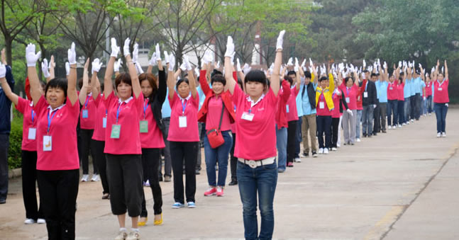 為了更好地達(dá)到健身功效,公司請(qǐng)專家精心編排了一套健身操。康姿百德健身操博采眾家之長(zhǎng),在借鑒佳木斯、山東廣場(chǎng)健身操的基礎(chǔ)上,巧妙的融入了部分民族的舞蹈語(yǔ)匯,整個(gè)健身操分七節(jié)共40個(gè)動(dòng)作。40個(gè)動(dòng)作或剛健有力,或輕柔詼諧,兼具動(dòng)感與美感,伴以節(jié)奏明快、耳熟能詳?shù)囊魳?lè),讓參與者不由自主的陶醉其中。